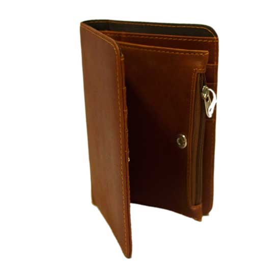 This brownish wallet features leather-like construction for a soft touch and a tasteful look. Designed with a zipper compartment, the wallet offers you a safe way to carry coins. This top-quality wallet is your supreme choice for holding cashes and cards.