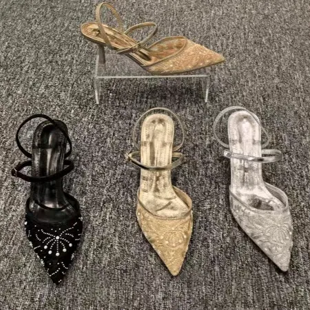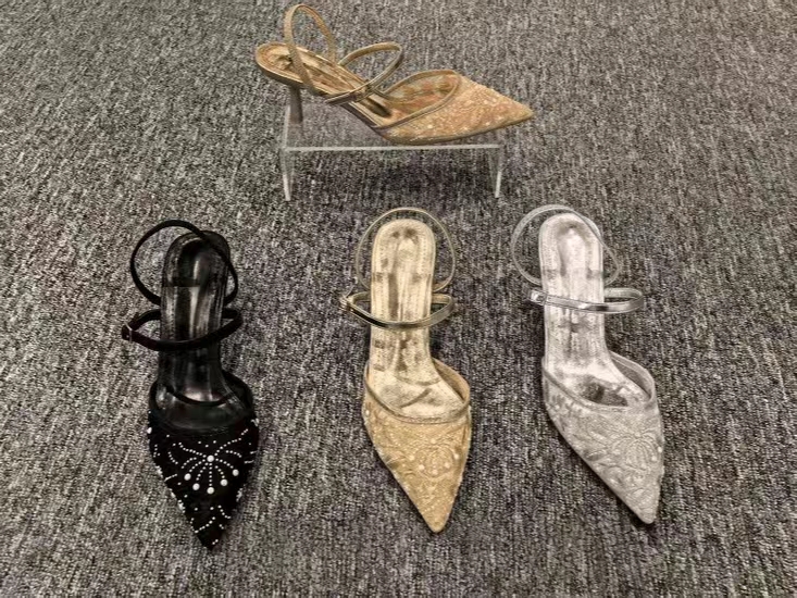 - The toe is adorned with an abundance of crystal-clear rhinestones, forming exquisite patterns that add brilliance to every step