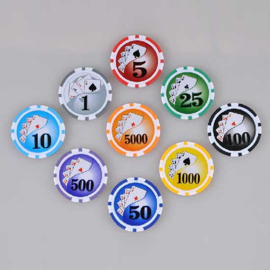 These poker chips can be made in many different colors. Printed logos and stickers can be made on both sides of the chips. The chips allow you to play home casino games anytime.