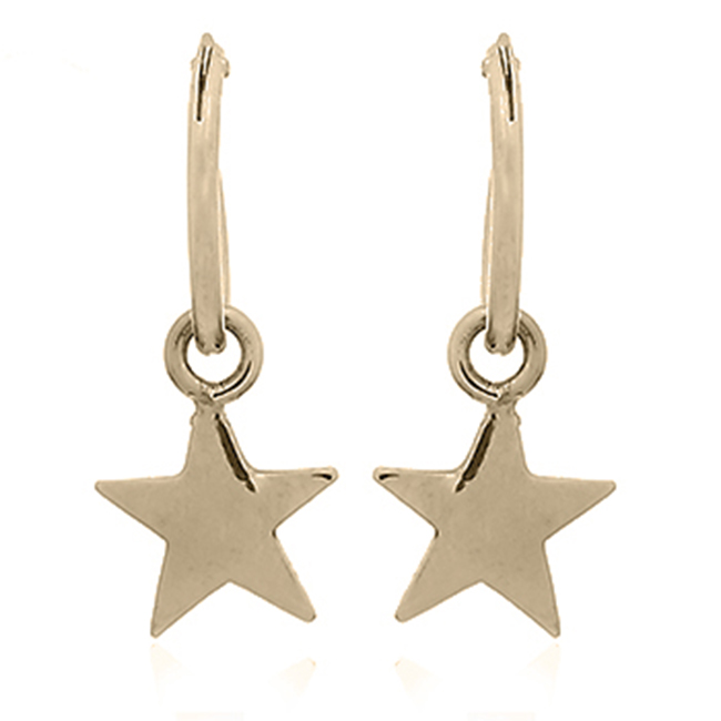 Polished Silver Star Mini Yellow Gold Plated Hoop Earrings