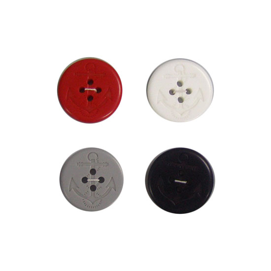 This 4-hole button is made of top-grade polyester for durability. It is designed with an anchor logo on its flat top for a touch of style. This polyester button comes with a shiny polished finish.