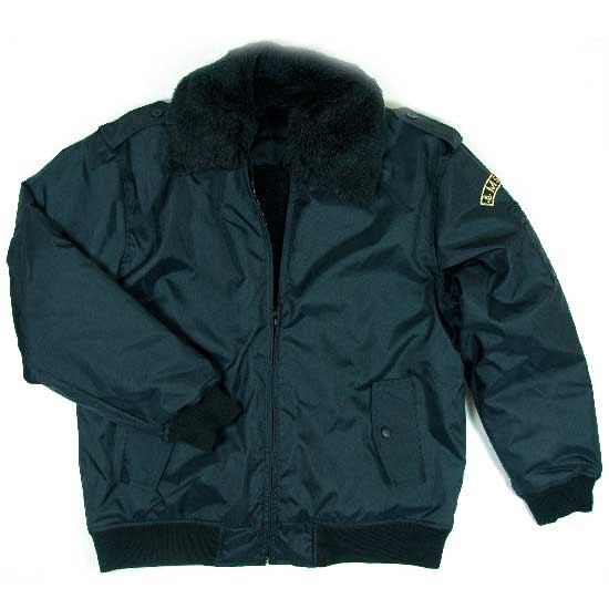 This is a polyester jacket in dark green. The windstop feature allows added warmth. This polyester jacket comes with a zipped closure and side pockets.