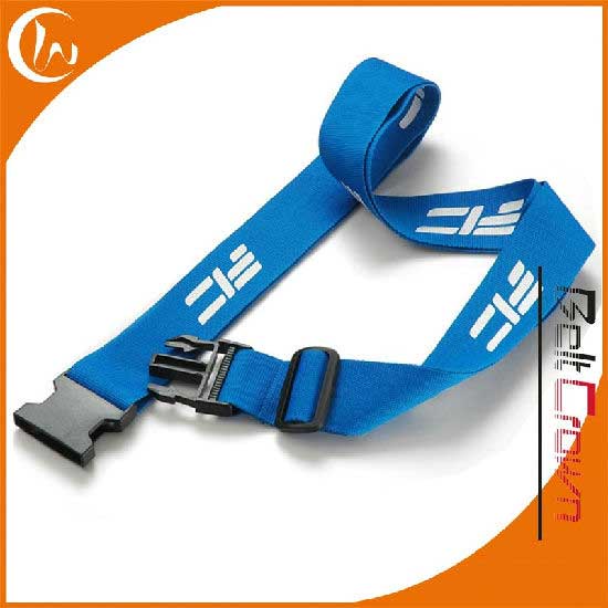 The polyester lanyard comes with a light blue design. It is crafted with distinct white-colored logos. The length of this lanyard can also be adjusted to fit individual needs.