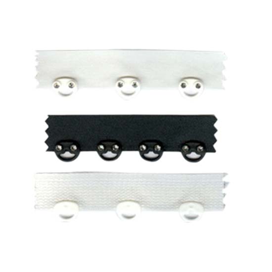 This garment tape is made of lightweight polyester and can serve as a toggle clasp. The round buttons are accented with rhinestones to sprinkle dainty radiance. Replace your dull garment clasps with this elegant piece of arts.