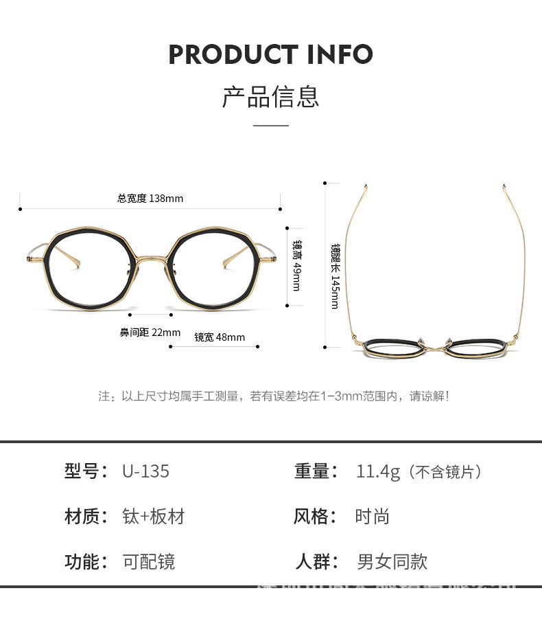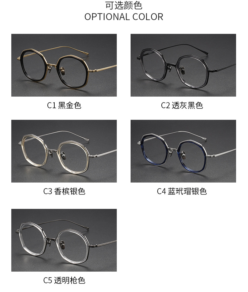 Polygonal retro myopia lens frame pure titanium female U-135 design glasses