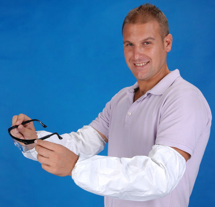 Polypropylene with polyethylene laminated 55 gsm nonwoven disposable sleeve with ¼ inch width elastic on both end of the sleeve.