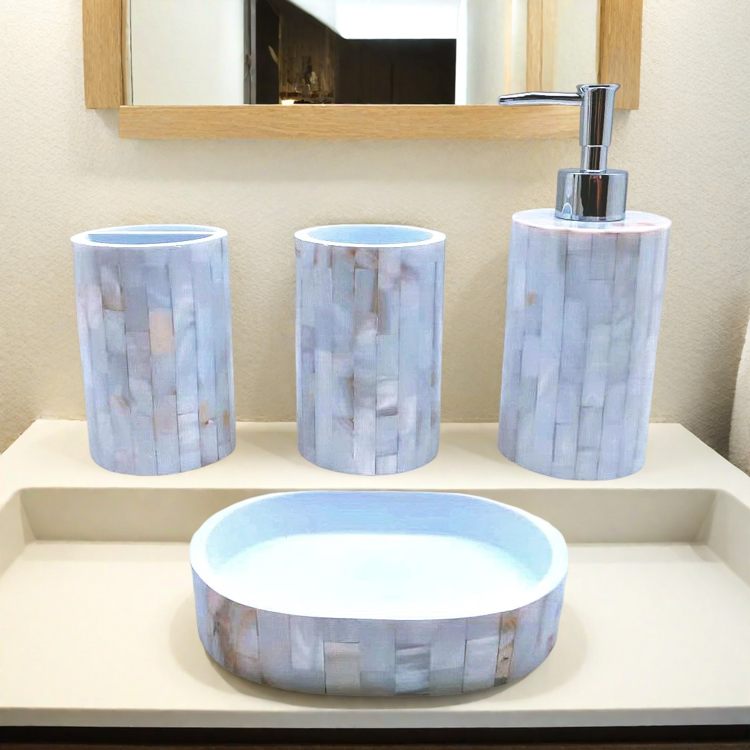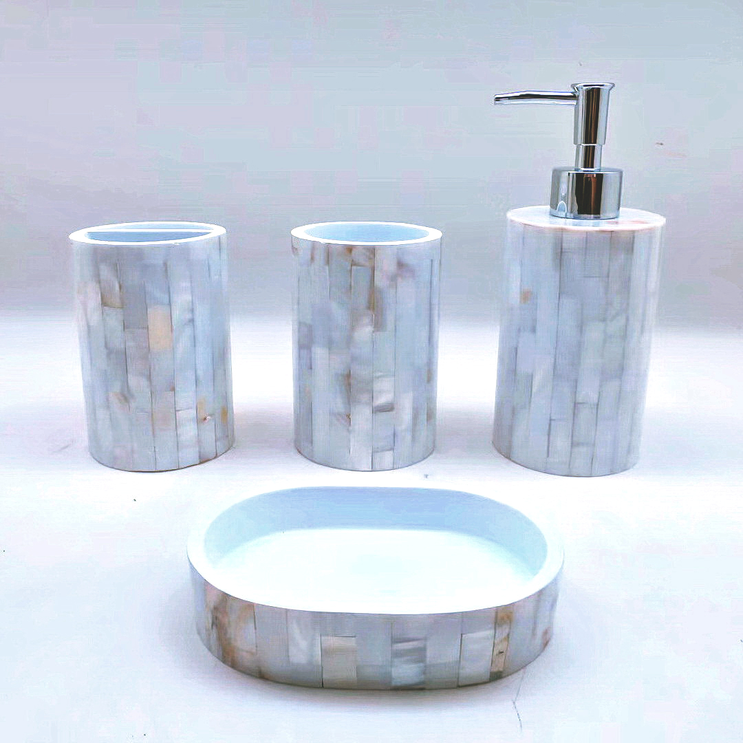 POLYRESIN BATHROOM ACCESSORIES SET PEARL SHELL DESIGN