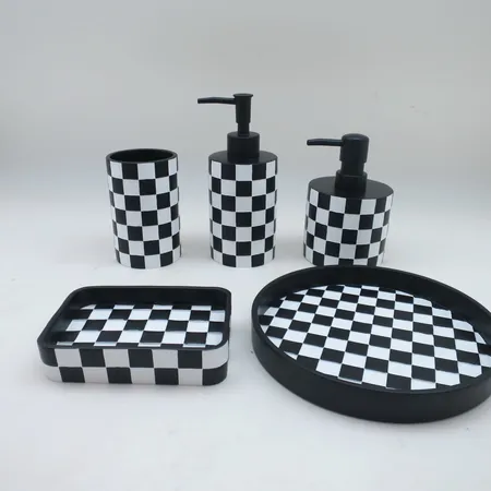 Polyresin Bathroom Accessories Set Checkerboard Design