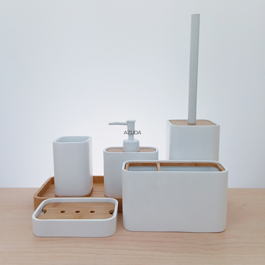 POLYRESIN BATHROOM ACCESSORIES SET MATT FINISH W/BAMBOO