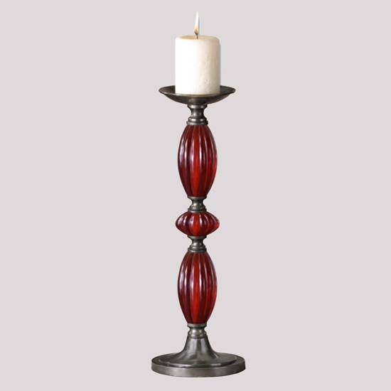 This is a polyresin candle holder that is a fine piece of handicraft. In a contemporary design with a red sleek surface, the candle holder is classy and elegant. Eye-catching, this candle holder is a great decorative piece for the home.