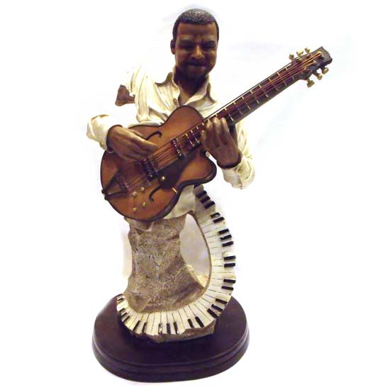This artistic decoration is perfect for those who fancy jazz music. It features a man playing guitar with great pleasure. The carving presents excellent craftsmanship with the delicate details and nice antique colors.
