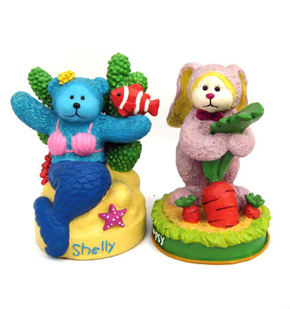 The presented figurines are exquisitely structured with polyester resin that unites subtlety and sturdiness. The figurines are characterized by bear-like layout. One is dressed like a mermaid while the other one appears like a rabbit. Enriched by eye-catching coloring, a strong sense of vigorousness can be flaunted. Customized logos can also be added for promotional purposes.