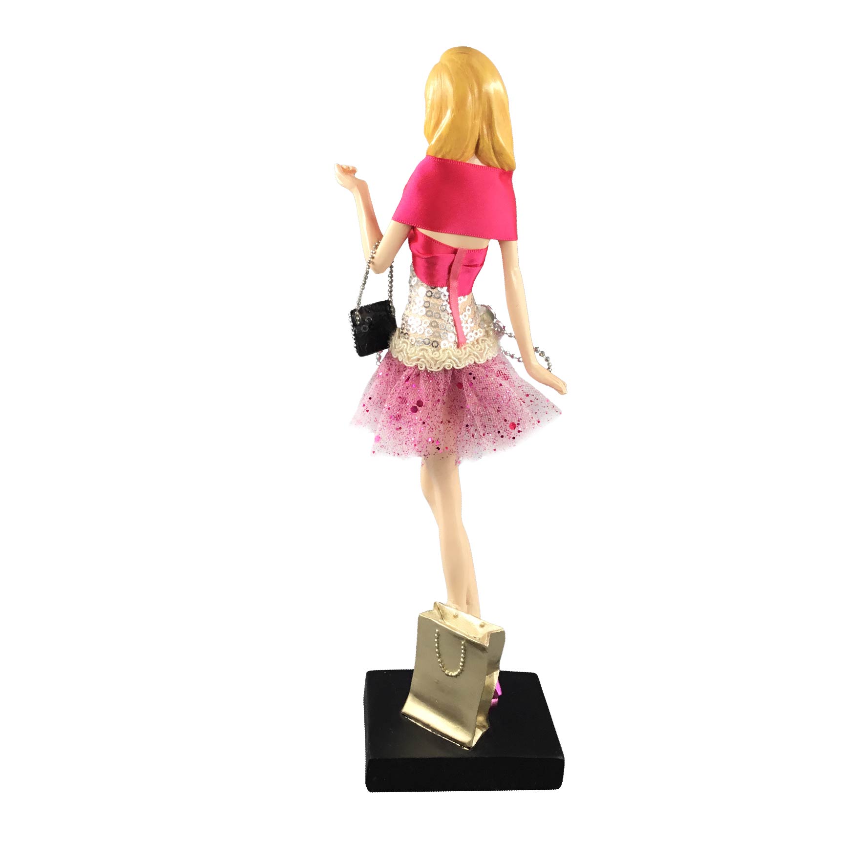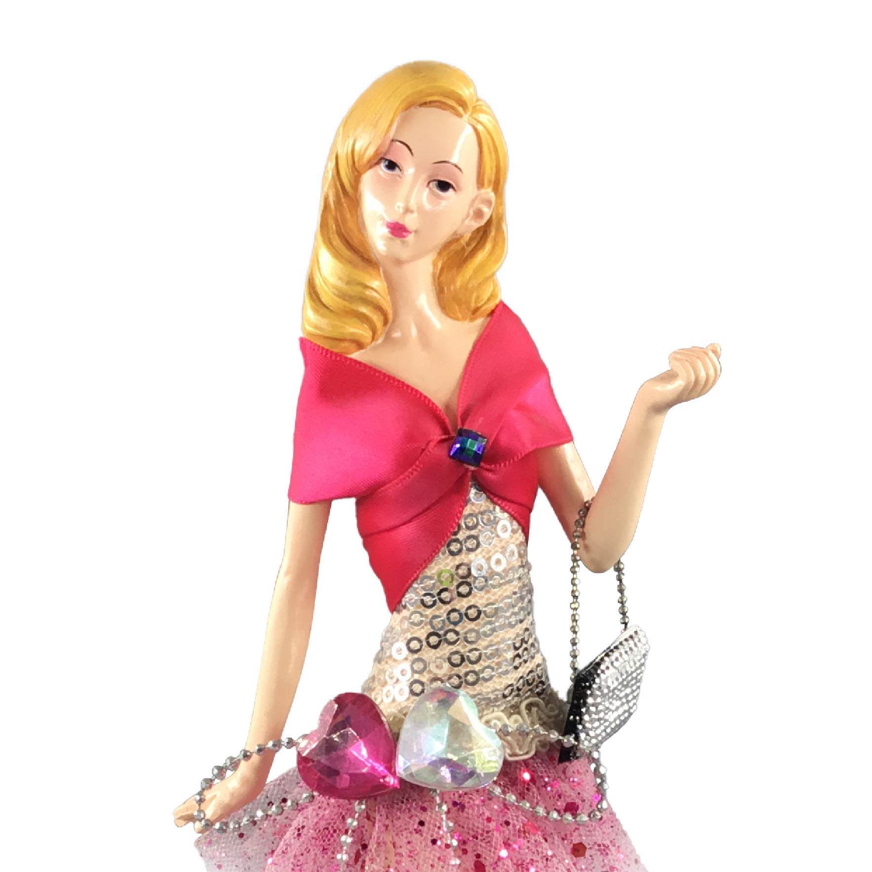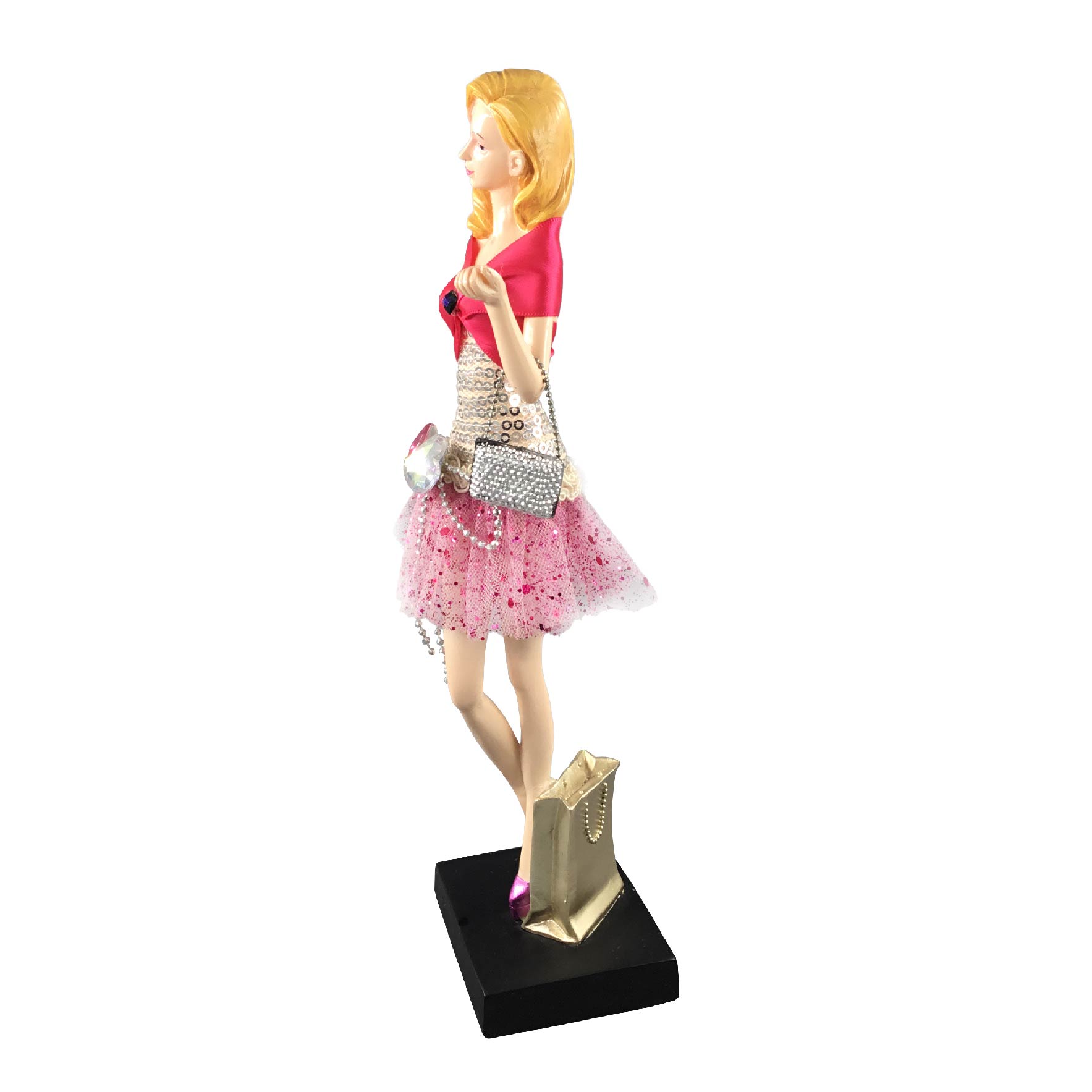 Item Name: Polyresin Fashionable Pink Dress Girl with Silver Bag Figure