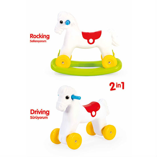 This rocking horse is designed for kids to ride on and play with. It is made of top-grade materials for a long service life. This wheel operated horse offers hours of fun and amusement to players.