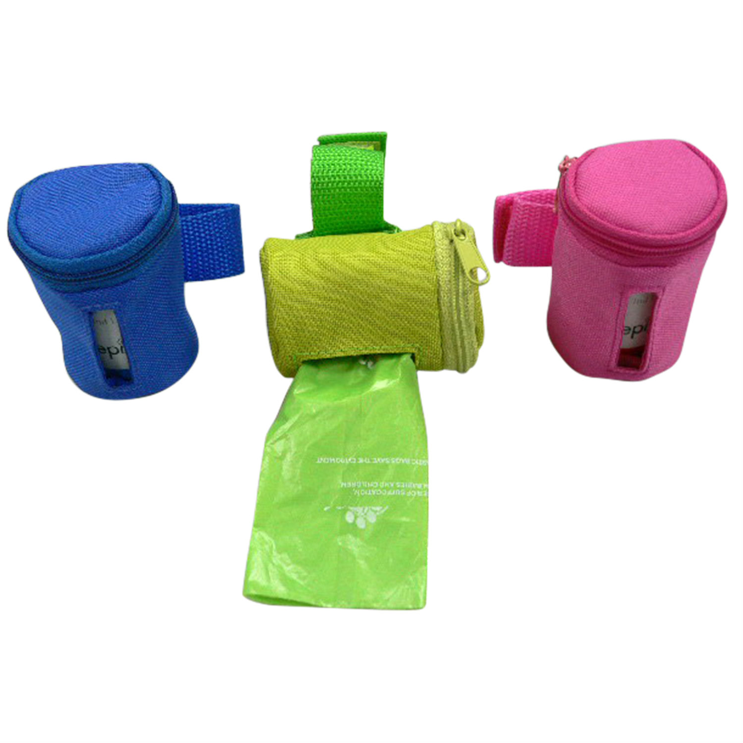 - Cylinder bag designed to contain rolls of pet waste bags.