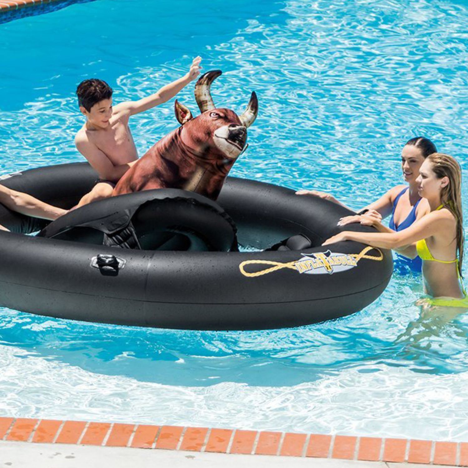 • Be brave and enjoy a fun bull-riding experience on water with Intex Inflatable! Host competitions with family and friends and see how long you can stay mounted on the bull
