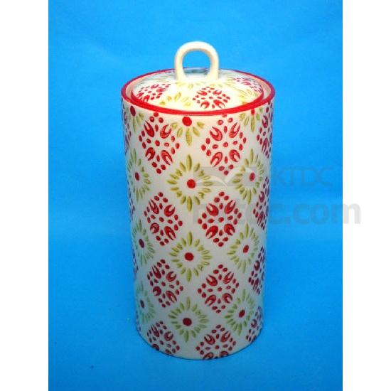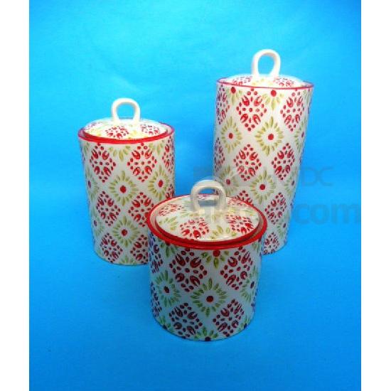 The pattern of each can and lid are hand painted and makes each piece an unique one due to slight difference.