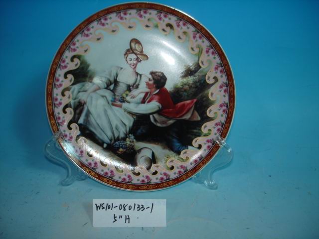 Porcelain Christmas plate with figurine pattern with size in D5".