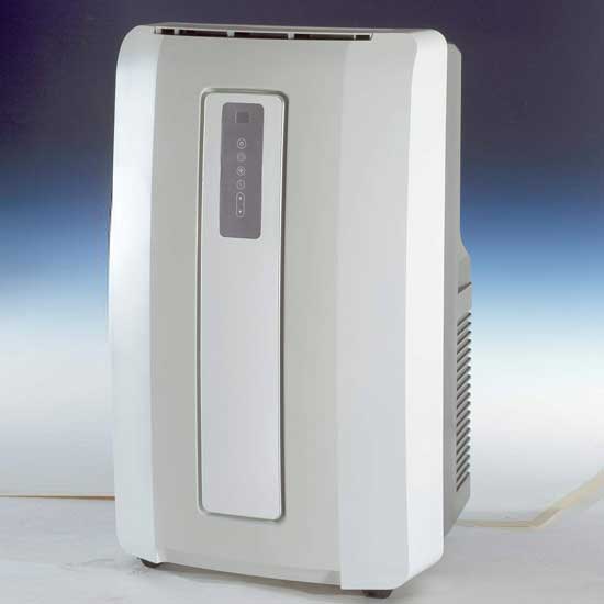 Featured is a compact portable air conditioner. This affordable air conditioner flaunts high mobility for your convenience. This flexible air condition is a smart addition to your home and office.