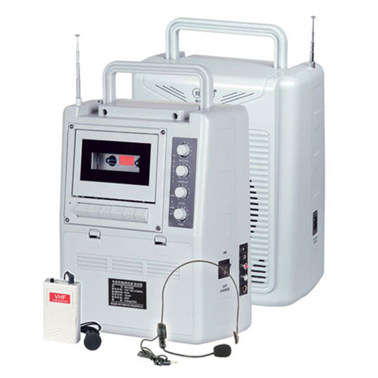 This portable amplifier features a separate microphone for your convenient use. Control is simple with the rotary switches. It can also be used to play cassette tapes for great functionality.