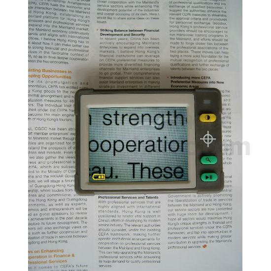 Portable Electronic Video Magnifier - Can read only with Magnifier or connect to TV by using the supplied video cable. Product size : 10.5cms x 7.5cms, easy to operate.
