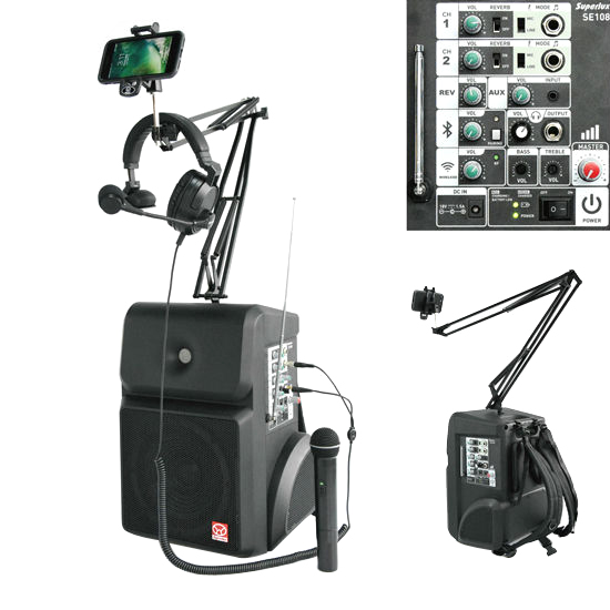 - Furnished with an UHF channel wireless microphone which is suitable for indoor and outdoor singing and lecture. For simple and easy operation.