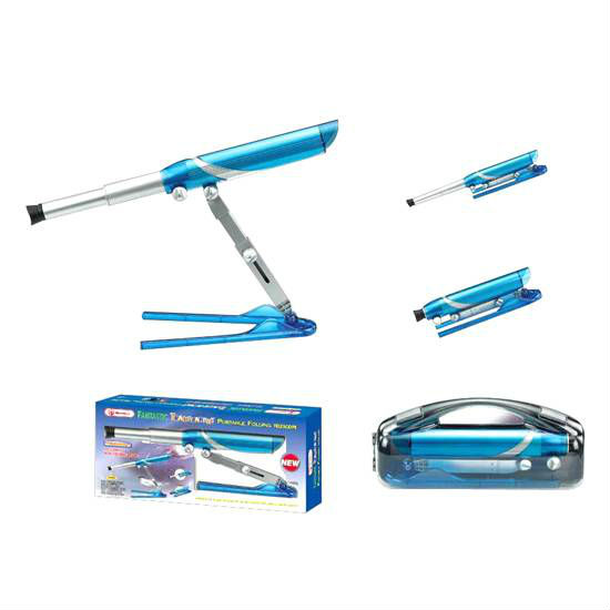 This is a portable folding telescope which can be used in a standing mode with the tripod and in a hand-held mode when it is folded.