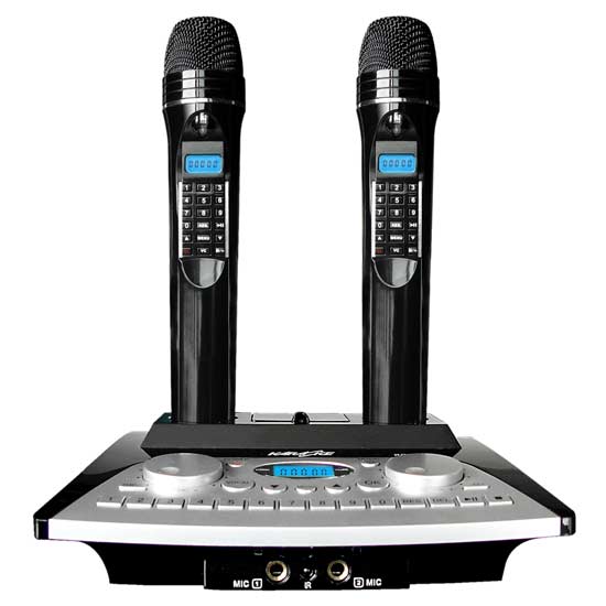 This portable karaoke player set comes with 2 digital microphones and 4 SD card slots. You can select songs and movies and set the vocal on or off, adjust the volume directly through this system. This player plays movies and songs, displays photos and more.