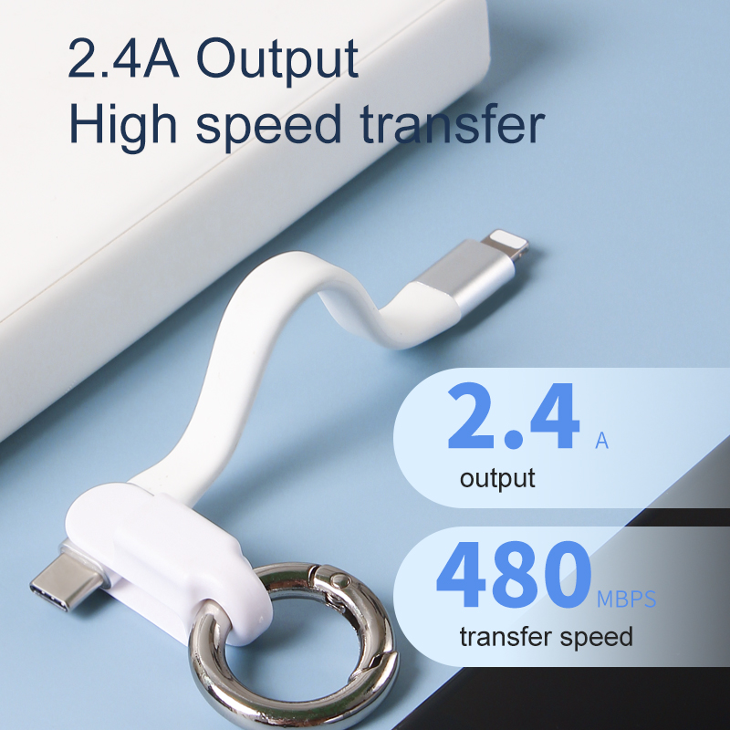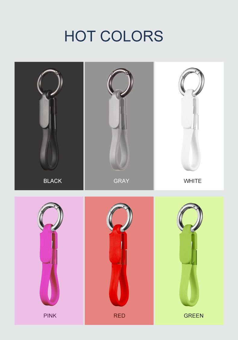 Portable Key Chain USB Cable Colorful Short Flat Cable for Smart Phone Charge Data Transfer Promotional Gift