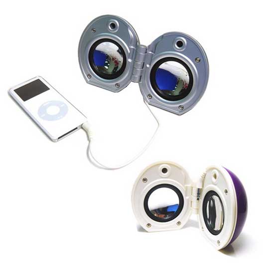 This portable MP3 speaker comes in a cute egg shape. It showcases high power output for satisfactory audio performance. The speaker requires no batteries or AC power for extreme convenience. Enjoy your favorite tunes with this pocket MP3 speaker.