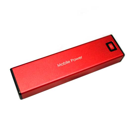 This portable powerbank features a sleek, metallic finish in red. The slender, rectangular shape is stylish and easy to carry. It provide user-friendly and reliable power source for your electronic gadgets.