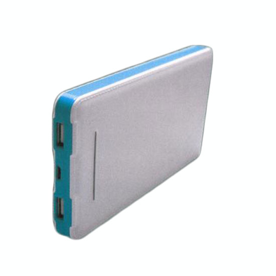 This universal powerbank is a user-friendly device that charges your phone anytime. It features a compact and lightweight structure for easy carrying. The white housing with a blue rim showcases a fresh and neat touch.