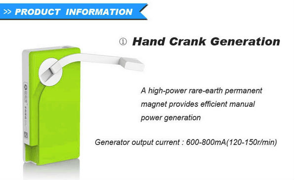 - Charging duration (using manual generation at a rated speed): 3.5.