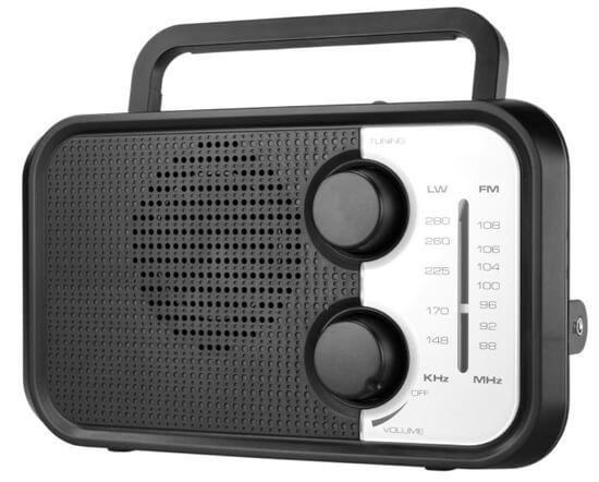 This is a portable radio with a durable housing. It is designed with a telescopic antenna for added functionality. This high-quality radio features a durable handle on the top for easy carrying.