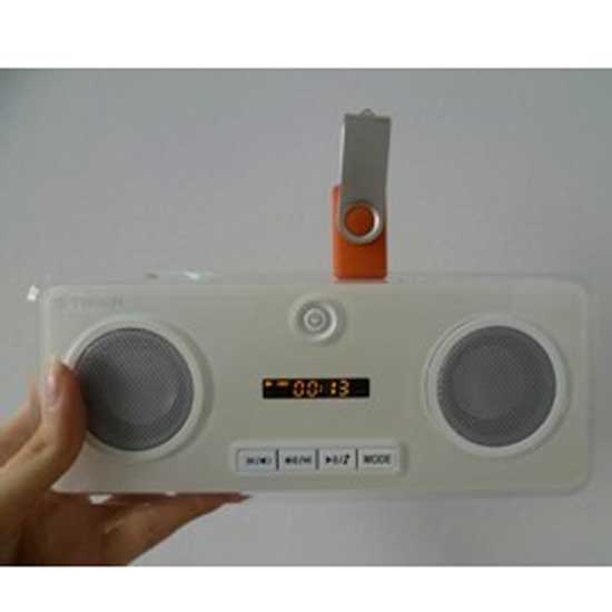 Displayed here is a portable speaker made of acrylic and ABS. It outperforms the rest with high fidelity. This portable speaker is lightweight, durable and user-friendly.