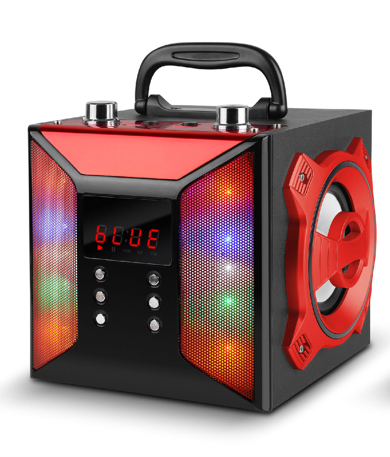 Portable speaker with USB,SD,BT speaker and alarm clock, rechargeable battery, 2 x 4" speaker