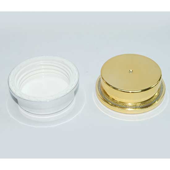 Displayed is a stylish powder case that is designed with a durable lid. This excellent powder case features a electroplated surface design. Available in two colors, this simply is the definitive powder case for cosmetic purposes.