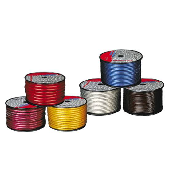 The spools contain power cables in different gauges and colors. Other power cables are available to suit various needs. The spool design is convenient for customers to store the cables tidily.