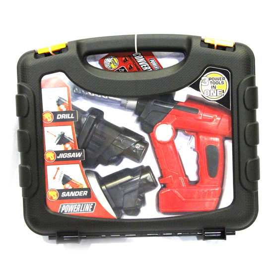 This power tool set comes with a drill, a jigsaw and a sander. The box container allows you to place the items inside neatly. This power tool set has ergonomic housing for added user-friendliness during use.