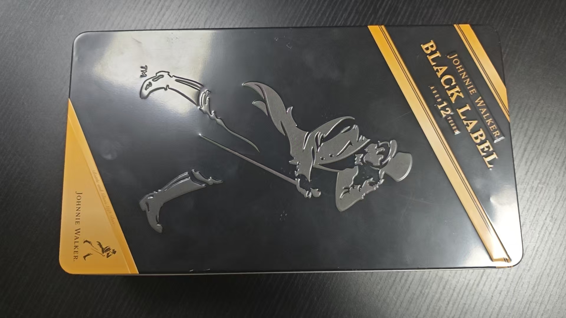 Elevate your gifting, storage, and brand presentation with this exquisitely crafted embossed black and gold tin gift box, a masterclass in premium metal craftsmanship, sophisticated design, and functional durability. More than just a simple container, this luxury tin box is a statement of elegance, designed to house premium spirits, gourmet treats, or high-end keepsakes, while serving as a lasting keepsake in its own right. Meticulously engineered from high-quality food-grade tinplate, this rectangular tin combines a sleek matte black finish, striking gold accents, and a detailed embossed striding man motif, making it the ultimate choice for luxury gifting, premium beverage packaging, collectible storage, and sophisticated home decor.