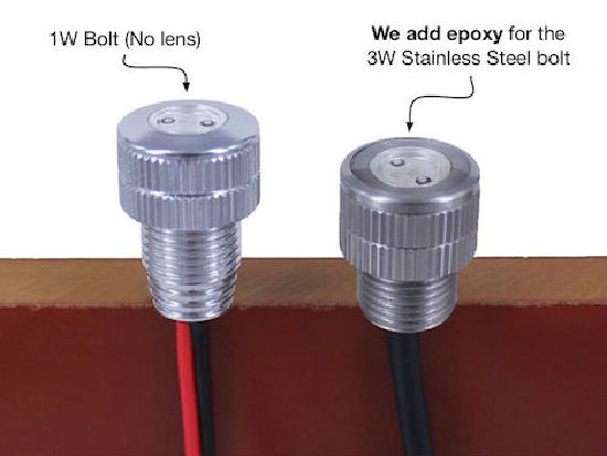 If you are seeking ultimate performance and the best brightness possible, we have got you covered. Choose our premium stainless steel 3W version of Flush Mount LED Bolt, which packs a powerful punch of triple the lumens, in a durable marine-grade stainless steel housing. It's guaranteed to stand the test of time, and shine strong for years to come.