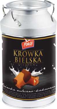 Two-coloured milk mass in dark cocoa spots of a unique pattern.
