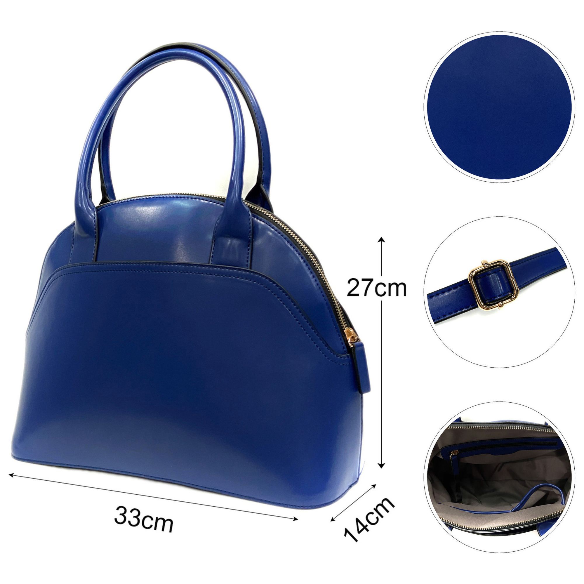Premium Imitation Leather Women handbag Tote bag Shoulder bag Zipper closure Royal Blue