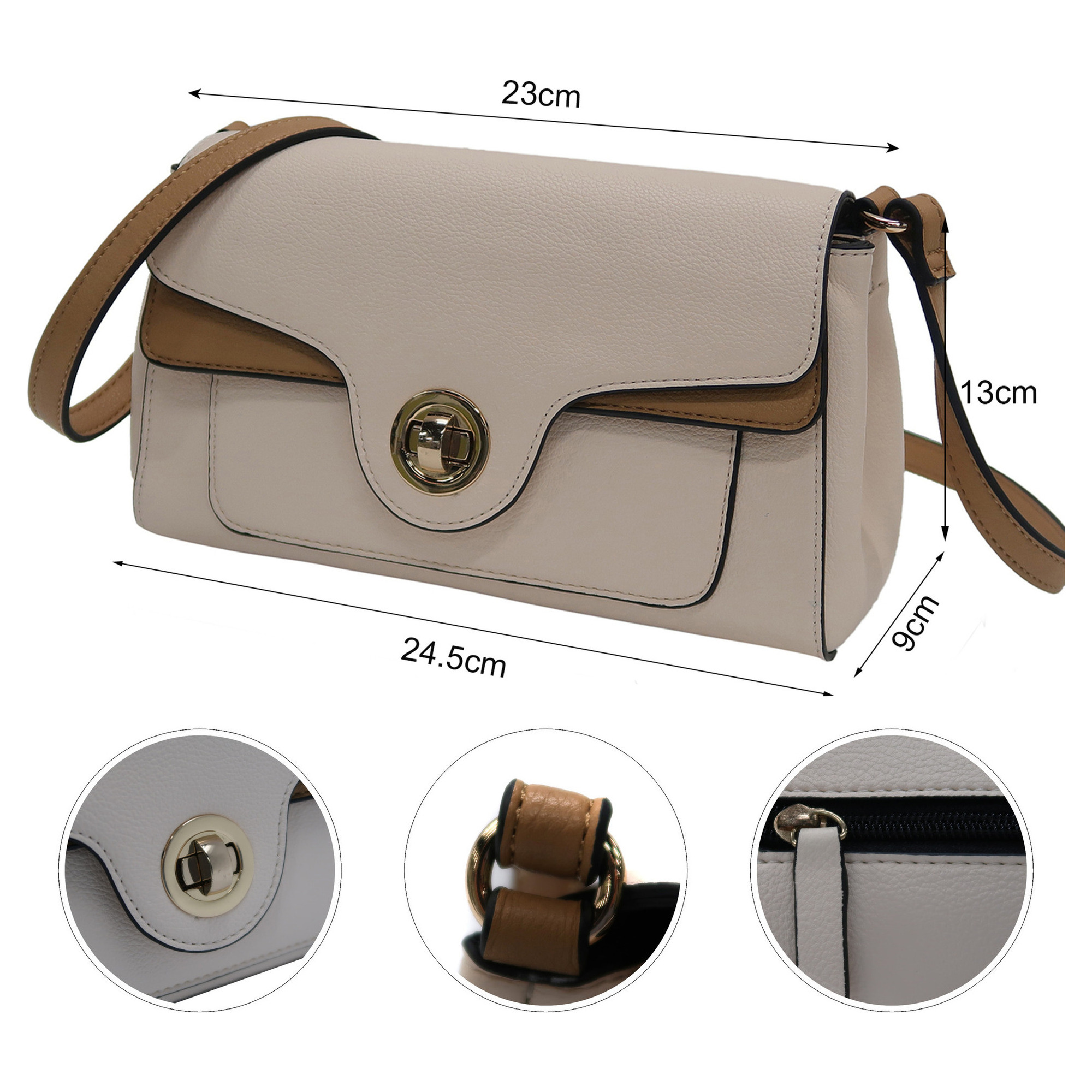 • Single shoulder strap, front flap pocket with magnetic snap closure, 1 exterial zip pocket, 1 interior medium slip pocket, 1 interior zip pocket and 1 interior slip pocket
