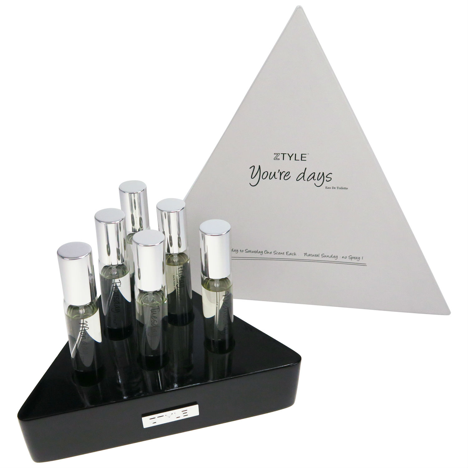 - Feature six small tubes of perfume in different scents.