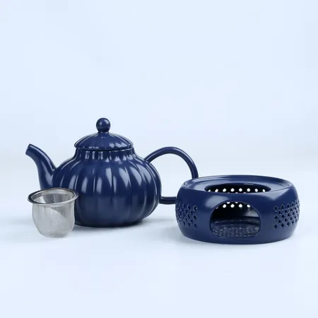 Elegant matte porcelain tea set with pumpkin motif. Includes teapot, cups, and warmers. Perfect for season gatherings.