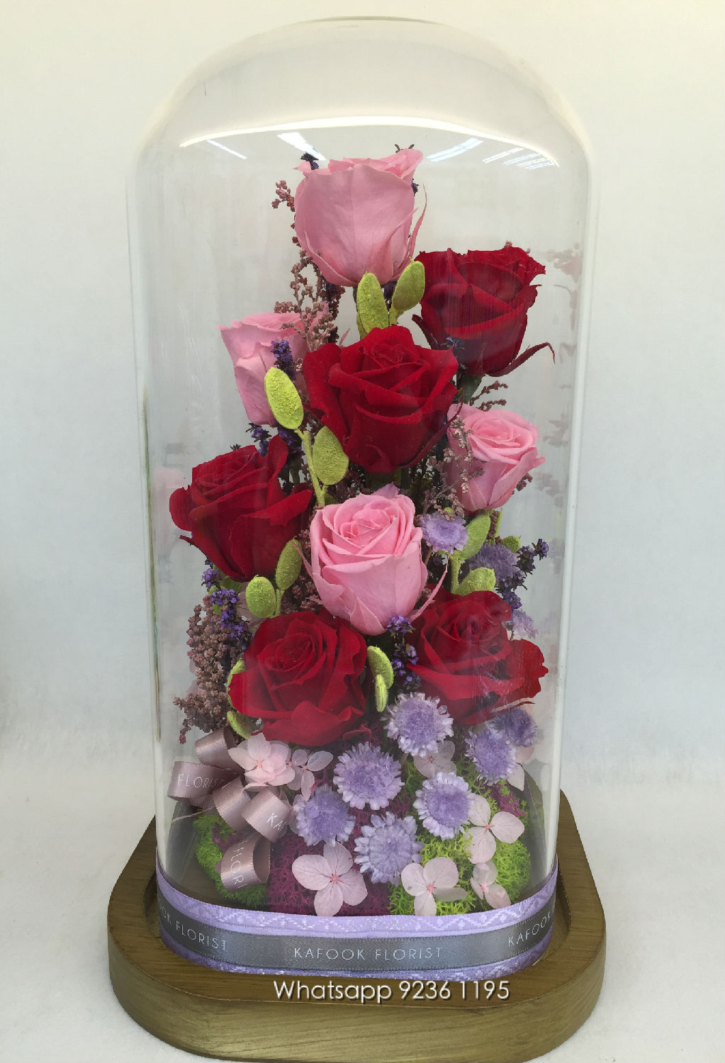Displayed here is a preserved floral arrangement that is sure to delight and to give pleasure. Flaunting irresistible red and pink blooms, this adorable piece comes with a translucent cover and a solid bottom. Not only does it work amazingly with all home décor, but also serves as an excellent present for your friends and family.