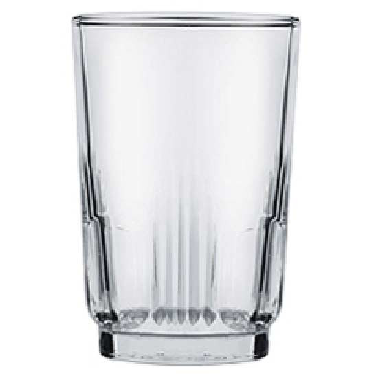 This stunning water glass boasts distinctive pressed glass patterns near the base, showcasing a crisp, clean style that will surely impress you. It features a graceful tapered shape and a beautifully polished finish. This deluxe pressed water glass is an elegant addition to your tableware collection.