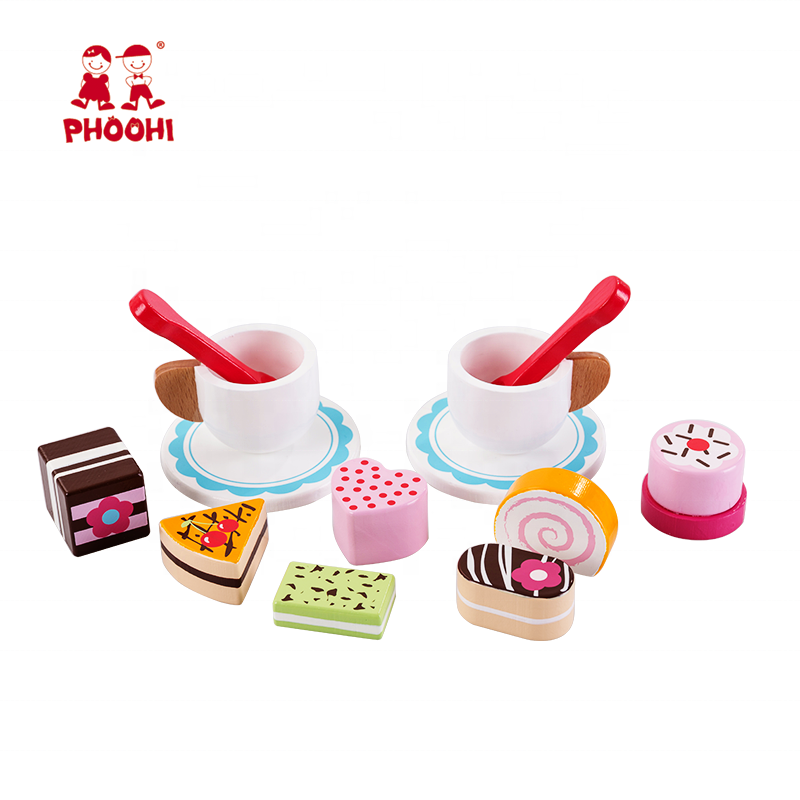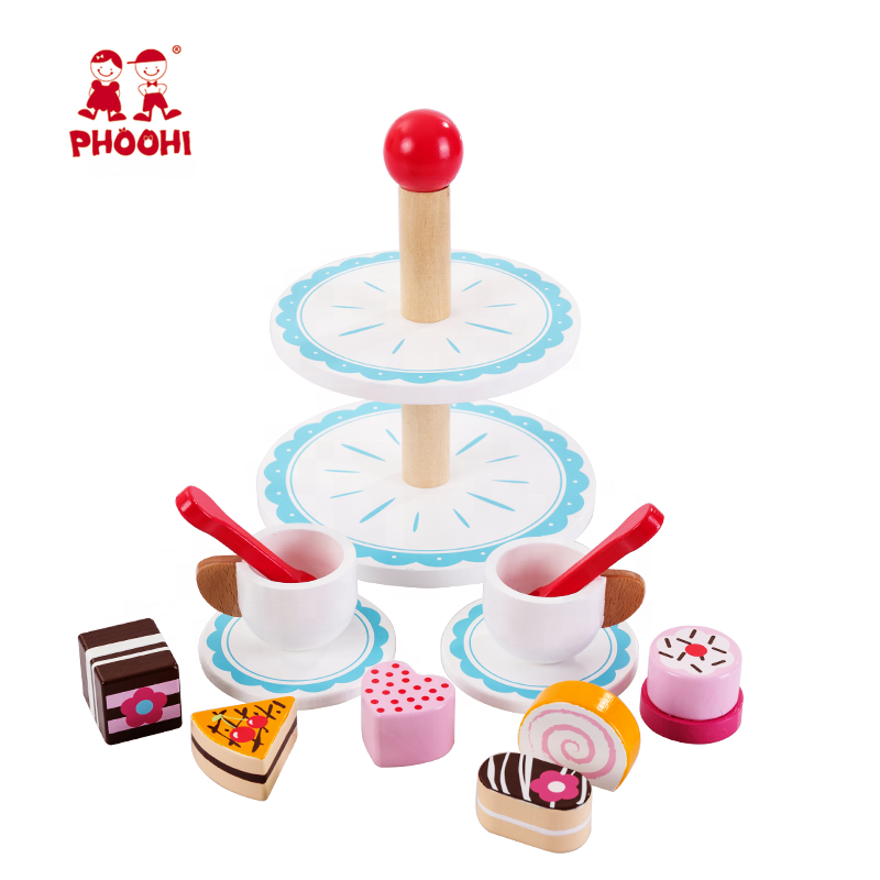 Children pretend play cake stand afternoon tea set wooden food toy for kids