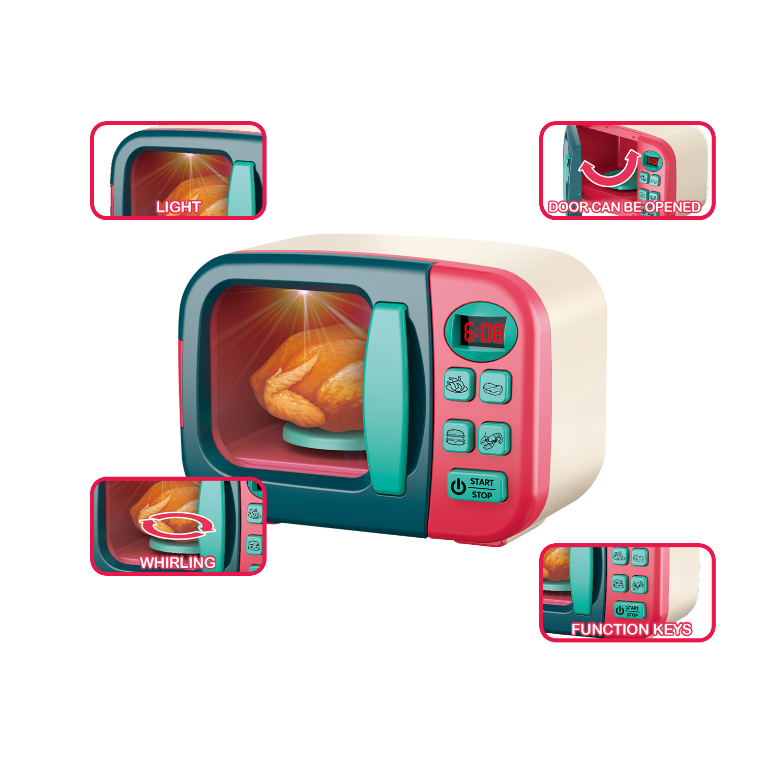 Put the food into the oven and press the power button, the oven will start to work and prepare delicious food for you